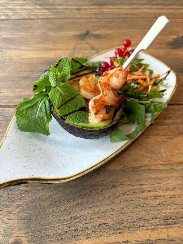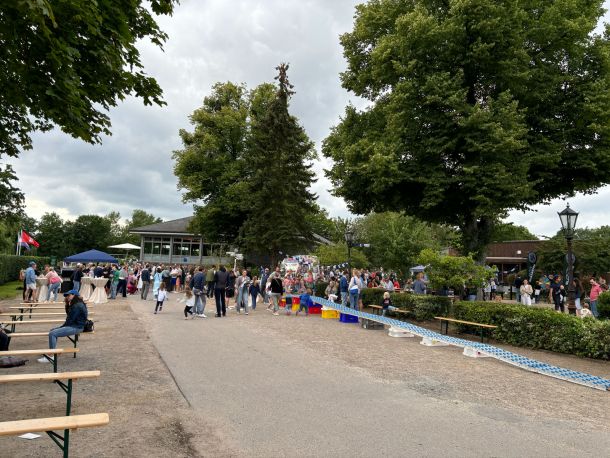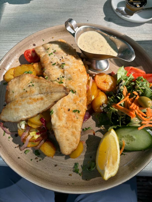 Die Terrasse bietet Platz für 120 Gäste. Drei große Sonnenschirme bieten einen Sonnenschutz. Ein kleiner Teil ist überdacht und ganzjährig nutzbar.