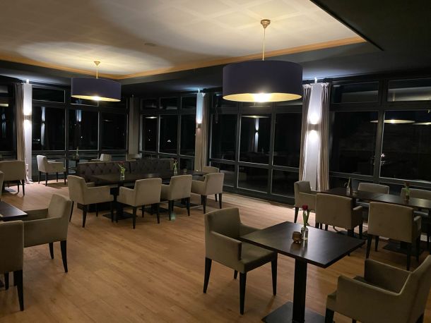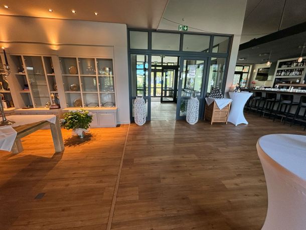 Das Restaurant bietet Platz für 100 Gäste. Nach Wunsch können hier noch runde Tische aufgestellt werden.