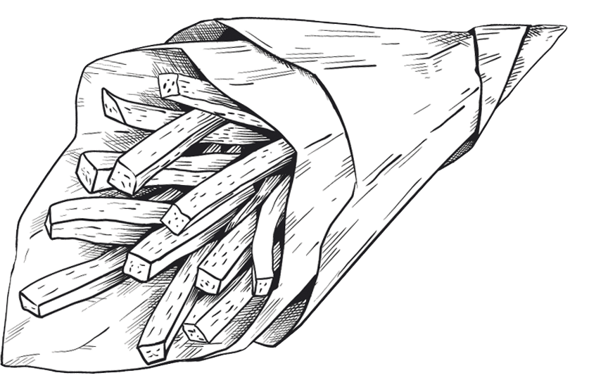Zu allen Burgern servieren wir Pommes mit Ketchup & Mayo